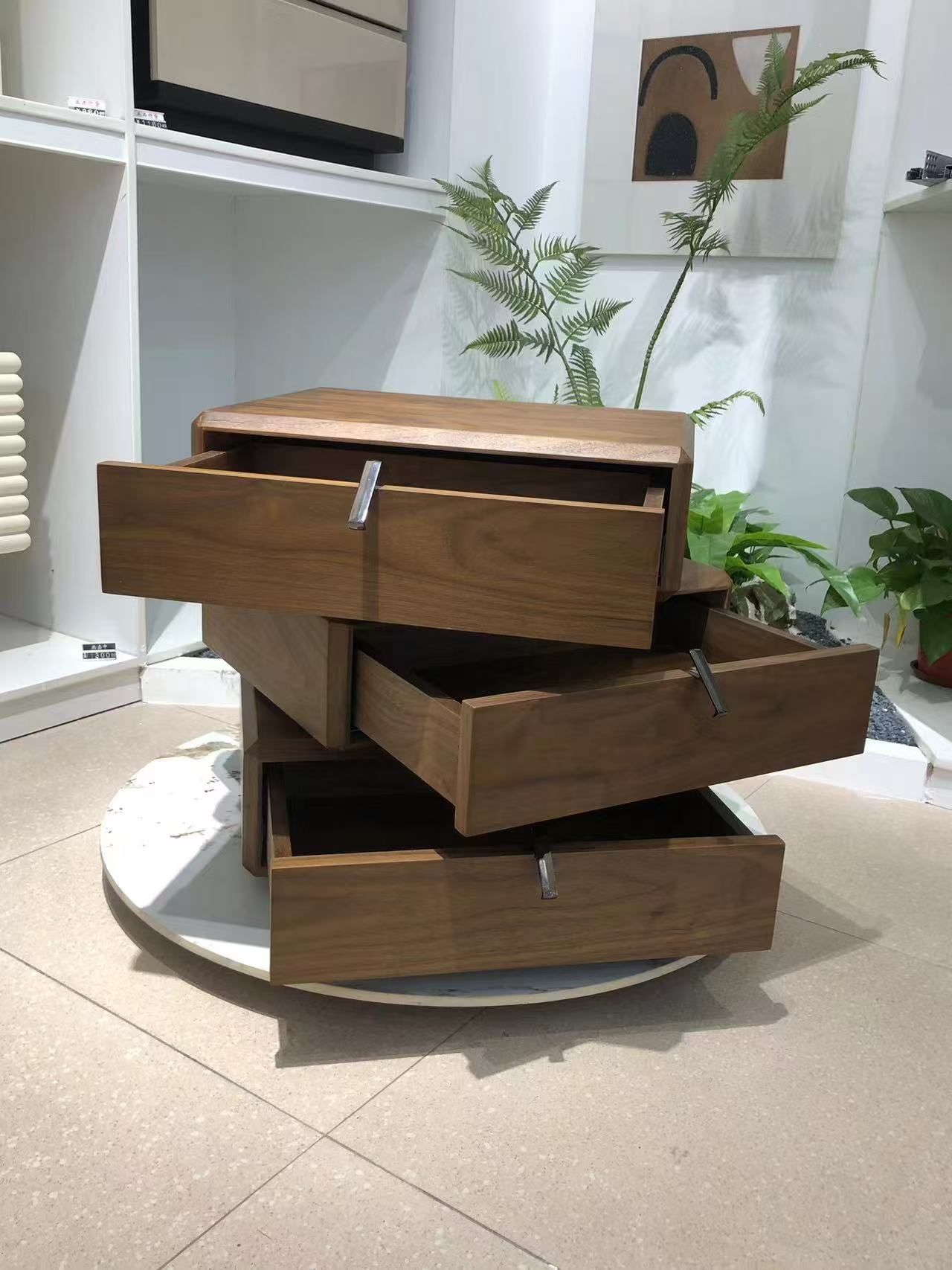 ダイナミックなスタッキング構造にインスパイアされたこの革新的なナイトスタンドは、従来のキャビネットの硬直性と対称性から解放されています。各引き出しは独立して回転し、機能性とスタイルの完璧なバランスを実現しています。自然な風合いと柔らかな手触りの高品質な無垢材を使用し、寝室でもリビングルームでも印象的な視覚的アクセントを演出します。
