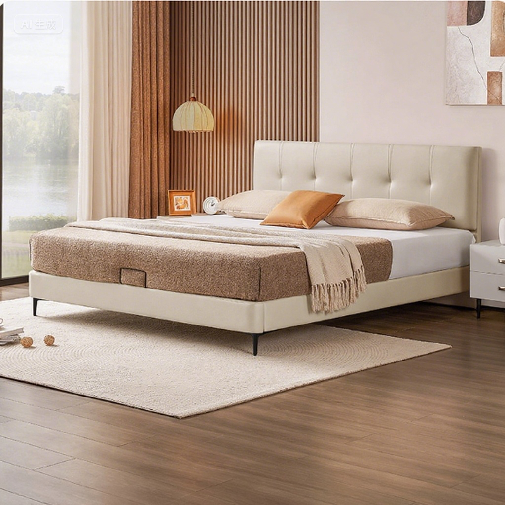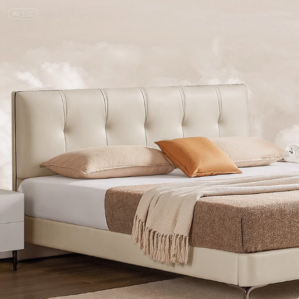 このベッドの魅力的なポイントは、しっかりとしたクッション性の一体型ヘッドボードです。背中を寄せるだけで、まるで柔らかな雲に包まれるような快適な支持感が得られ、一日の疲労を癒して深い眠りへと誘います。高級感あふれるレザー素材と洗練されたデザインは、寝室の雰囲気をエレガントに昇華。快適さと見栄えを両立した、毎晩が贅沢な寝具の一足です。