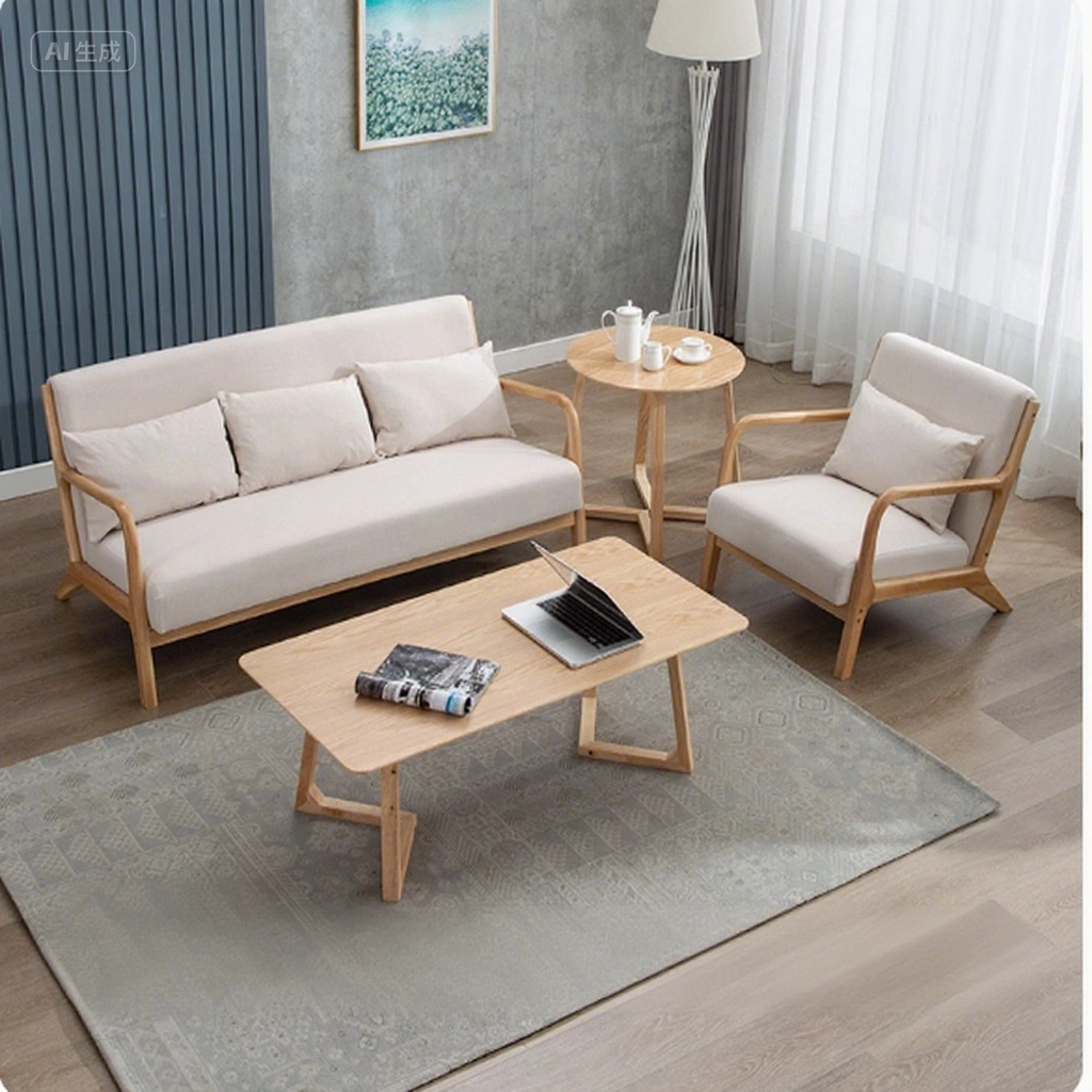 木の温もりと柔らかなベージュが融合したこのソファセットは、20㎡~50㎡の小・中規模住戸にぴったりです。シンプルなデザインのソファに、デザイン性のある V 型テーブルたちが組み合わさり、機能と美しさを両立。木製フレームの耐久性と布張りの柔らかさが相まって、家族で集まる時間や一人で過ごす時間を快適にサポートします。北欧のノスタルジックな雰囲気がリビングに広がり、毎日のくだらない日常を特別な時間へと昇華させる家具セットです。