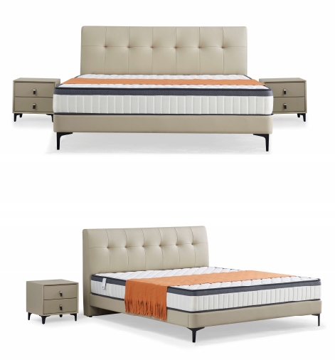 重厚感溢れる、ラグジュアリーなベッド 寝室の中で存在感を発揮し、 高級な雰囲気を作り出します。 張地に高級感のあるソフトテックを使用し、 どっしりとした存在感を演出。 一見、革張りのような張地は面倒なメンテナンスが不要 より一層の高級感を感じさせます。