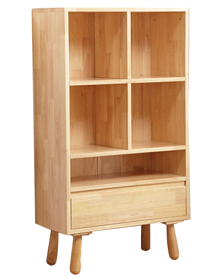 実用性のある棚5つ、引出し1つある
