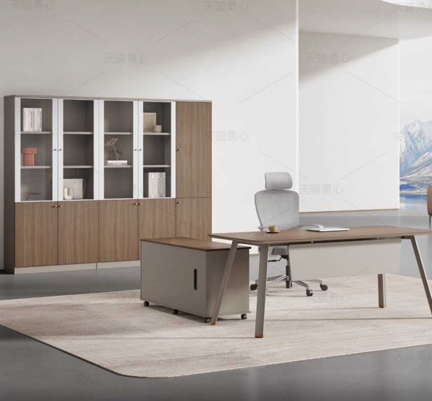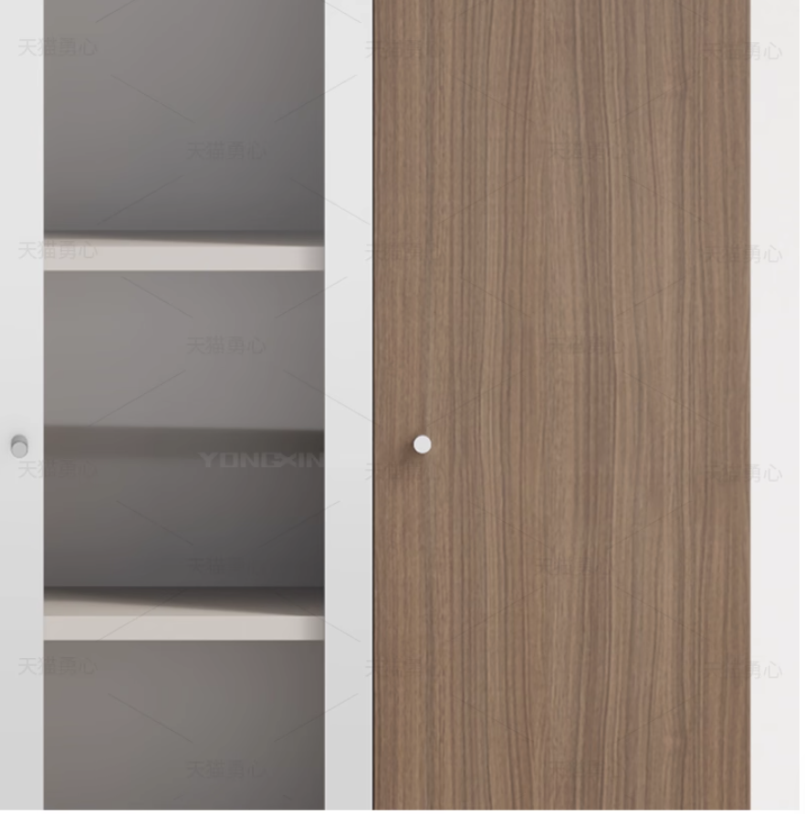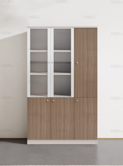 このキャビネットは、上のガラス戸セクションで書類や飾りを見栄えよく陳列し、下の木製戸セクションでプライベートなアイテムをスッキリ収納。ミニマルなデザインは、オフィスの書庫としても、リビングの収納棚としてもピッタリ。木と白の調和がもたらす洗練された雰囲気で、空間を整然と美しく保ちます。使い勝手と見栄えを両立した、多用途な収納ソリューションの一つです。