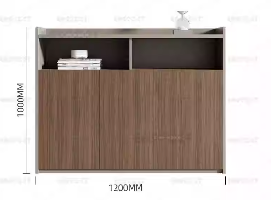 このハンギングキャビネットは、木目調の質感とシンプルなラインが特徴で、オフィスの壁面を有効活用して収納スペースを創り出します。上のオープンセクションで頻繁に使う書類や小物を手軽に取り出せ、下の戸セクションでプライベートなアイテムを整理。ミニマルなデザインは、オフィスの空間をすっきりとさせ、作業効率を向上させる実用的な家具の一つです。